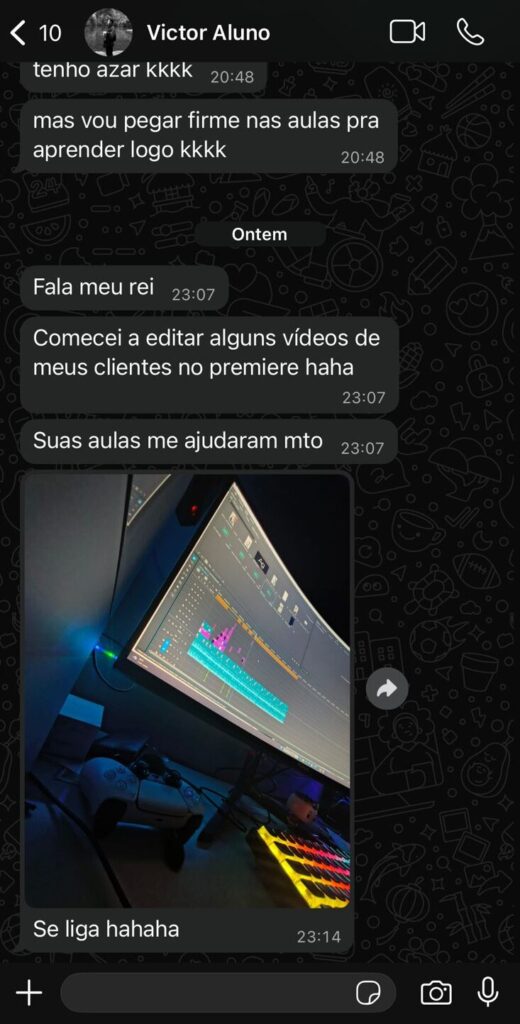 Hoje eu tenho a honra de trabalhar com os melhores nomes do mercado digital e transformei a minha vida através da edição de vídeo.